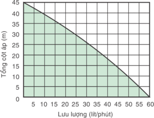 ĐỒ THỊ QUAN HỆ GIỮA LƯU LƯỢNG NƯỚC VÀ TỔNG CHIỀU CAO CỘT ÁP CỦA BƠM