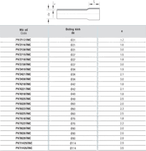 – Đầu nong ống theo tiêu chuẩn DIN 19532.