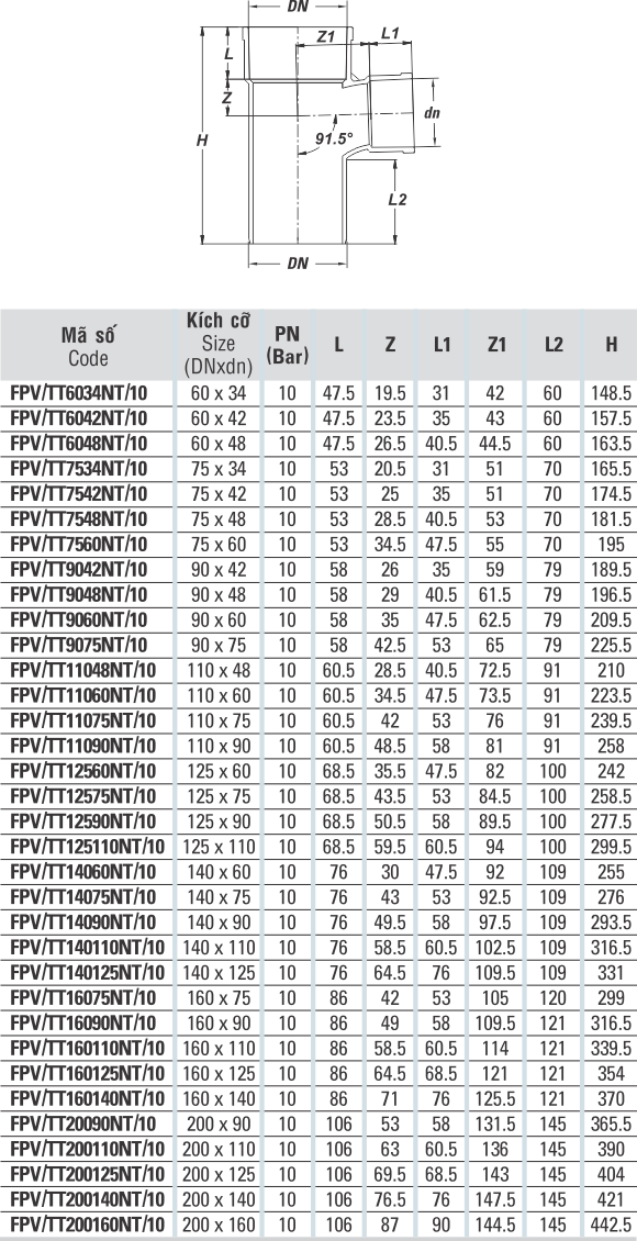 Tê 90 (91.5) Một Đầu Nối Trong
