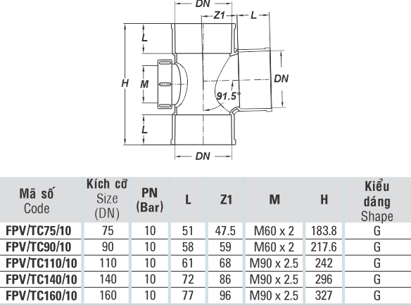 – Đầu nong ống theo tiêu chuẩn DIN 19532.