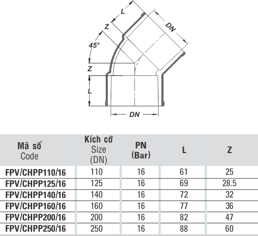 | Mã SP | FPV/CHPP110/16, FPV/CHPP125/16, FPV/CHPP140/16, FPV/CHPP160/16, FPV/CHPP200/16, FPV/CHPP250/16 |