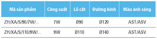 “…” chọn mã Ánh sáng trắng = AST, Ánh sáng vàng = ASV
