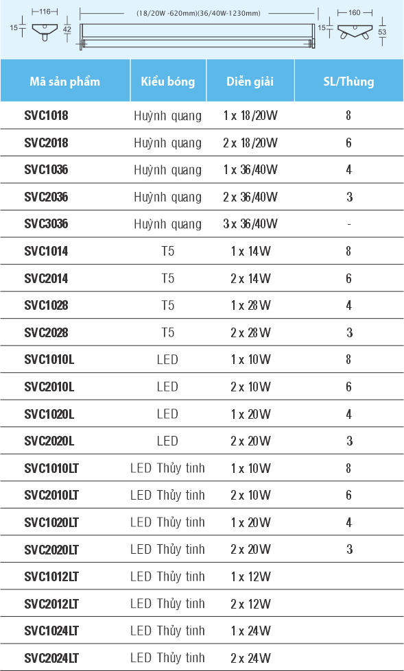 Bộ Đèn Huỳnh Quang Kiểu Chữ V – SVC