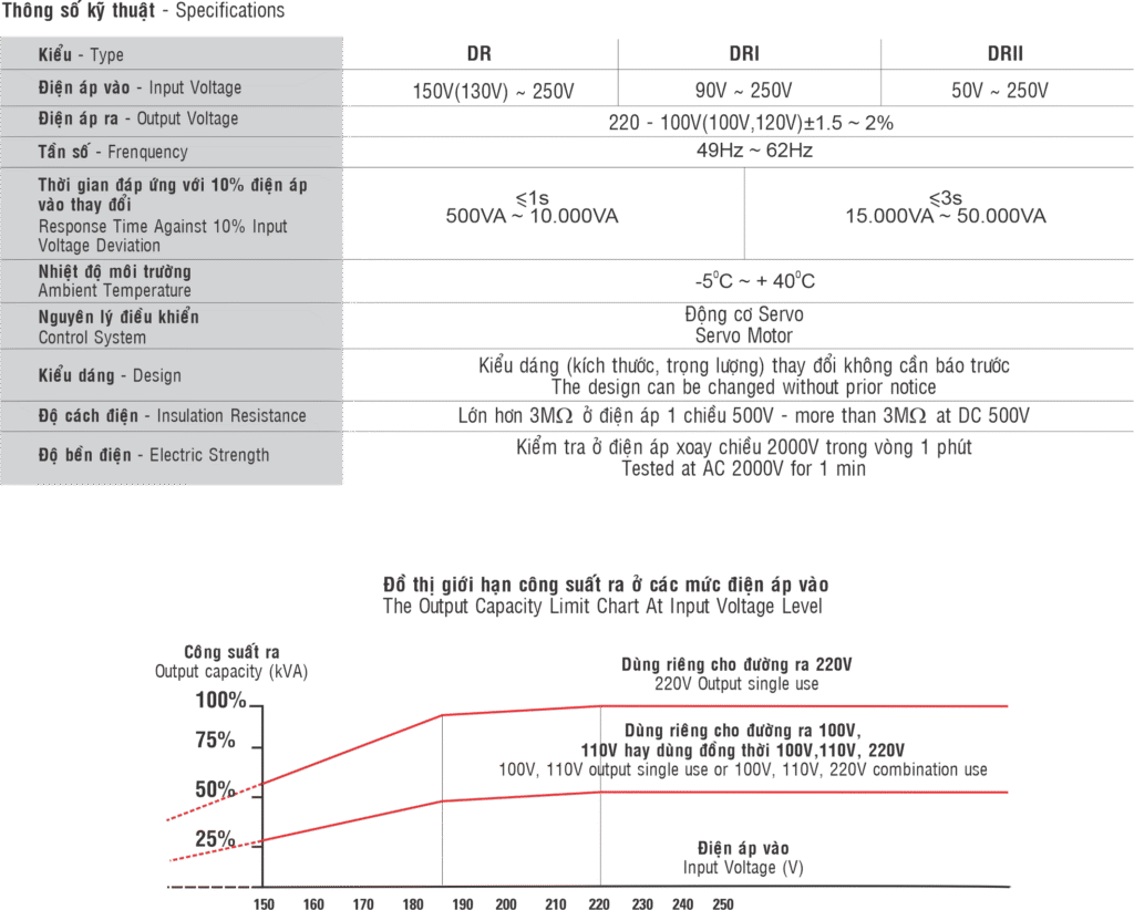 | Mã SP | DR/1000, DR/2000, DR/3000, DR/5000, DR/7500, DR/10000, DR/15000, DR/20000, DR/25000, DR/30000, DR/50000 |